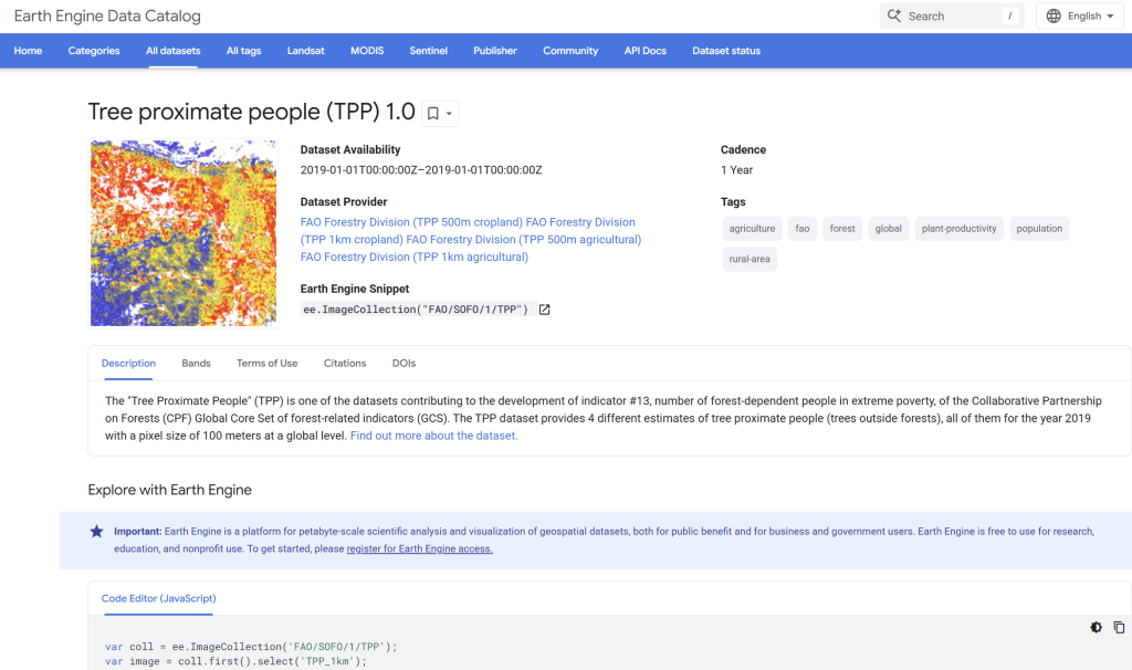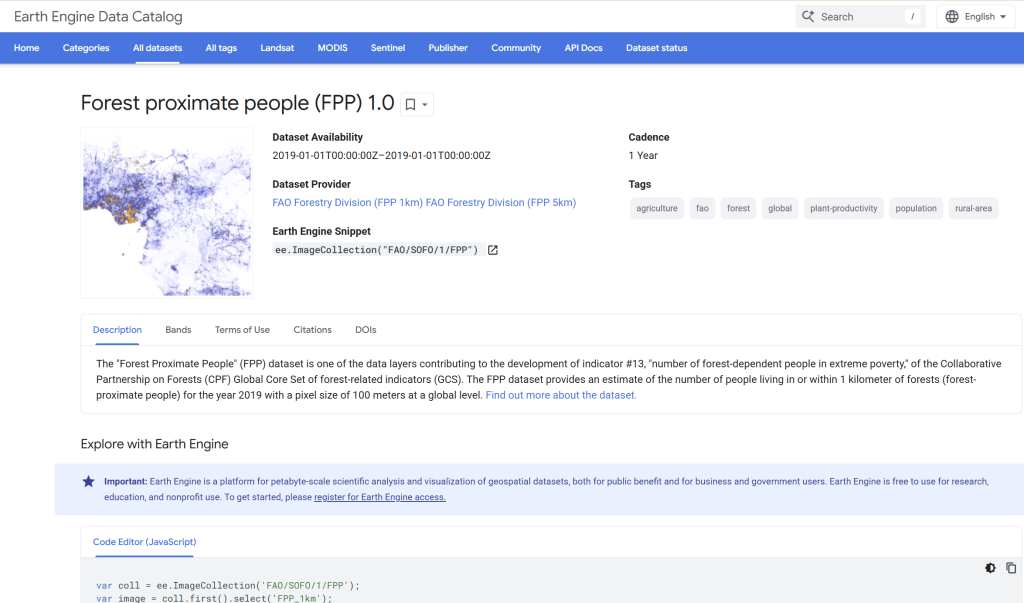 Forest-Proximate People Dataset – Google Earth Engine catalog layer